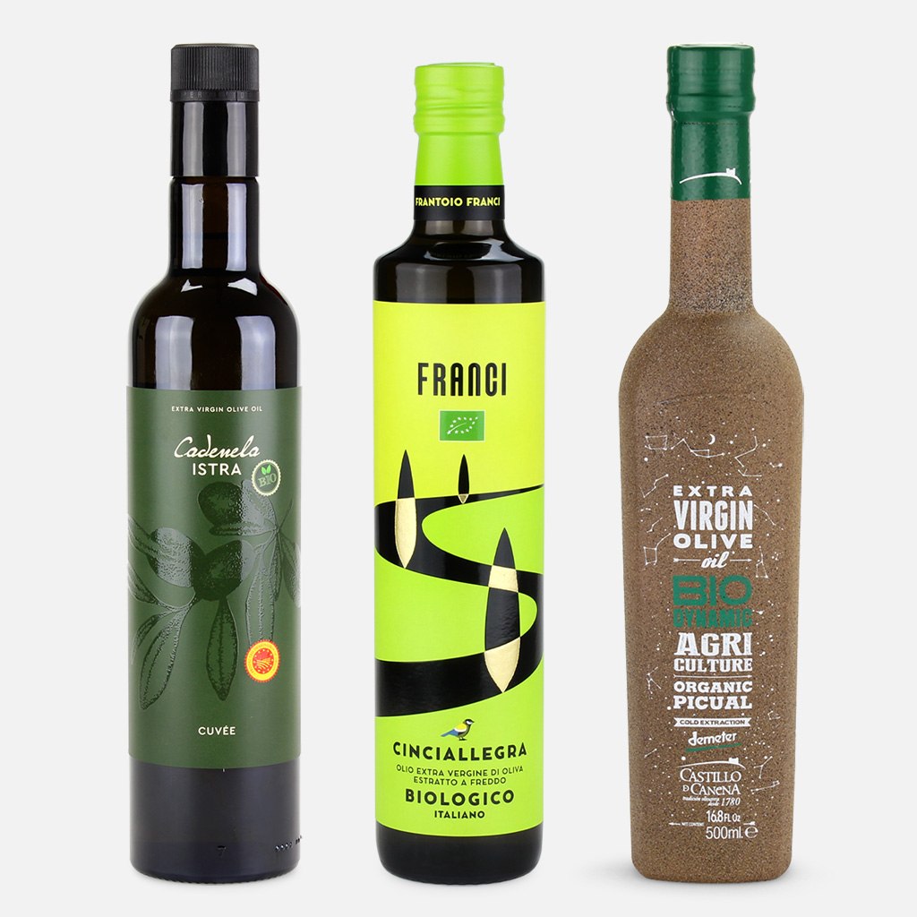 Erfreuen Sie sich, Ihre Familie oder Freunde mit einer kleinen Rundreise durch Europas Spitzen-Olivenöl-Regionen: der mittel-fruchtigen Cuvée von Cadenela aus Istrien, dem mild- bis mittel-fruchtigen "Franci Bio" von Giorgio Franci aus der Toskana und dem intensiven, biologisch-dynamischen "Picual" von Castillo de Canena (Provinz Jaén, Andalusien, Spanien). Alle Öle sind preisgekrönt und in Superiorqualität! Mehr Infos finden Sie auf den Detailseiten.